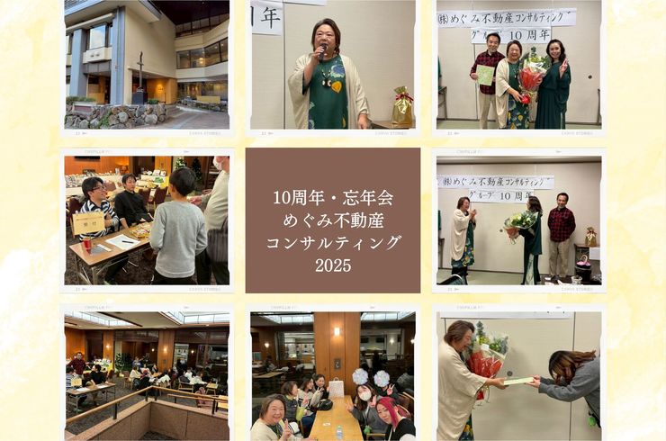 2025/12/24株式会社めぐみ不動産コンサルティングは、 おかげさまで10周年を迎えることができました。 この節目の年に、 初めての「めぐみグループ忘年会」を開催。 会場は、お客様でもある 箱根路開雲様です。 10年前。 シングルマザーだった代表・竹田が、 「シングルマザーの貧困を根本から解消したい」 その強い想いを胸に、めぐみ不動産コンサルティングはスタートしました。 一つ屋根の下で支え合って暮らすシェア... -